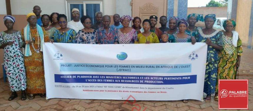 Pour favoriser l’accès des femmes aux ressources de production, le réseau WiLDAF-Bénin a organisé à l’hôtel Yésu Lèmè de Klouékamè, dans le département du Couffo, un atelier de plaidoyer à l’intention des leaders traditionnels, ministères sectoriels et acteurs agricoles, les jeudi 19 et vendredi 20 juin 2025. Cette activité s’inscrit dans le cadre du projet « Justice économique pour les femmes rurales en Afrique de l’Ouest », mis en œuvre par WiLDAF avec le soutien de l’AWDF et en partenariat avec FADeC-ONG au Bénin.