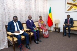 Le président de l’Assemblée nationale, Joseph Fifamin DJOGBÉNOU, a reçu ce jeudi 5 mars 2026, au Palais des Gouverneurs à Porto-Novo, la professeure Dandi GNAMOU, présidente de la Haute Cour de Justice, accompagnée d’une délégation.
