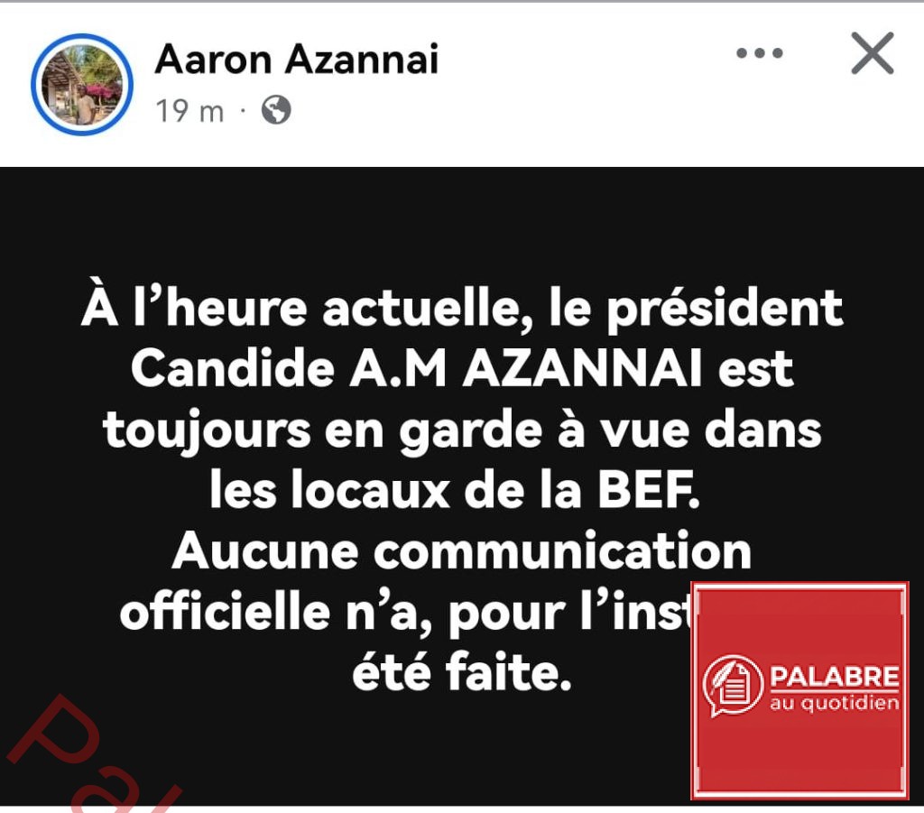 Une information erronée a circulé ces dernières heures sur les réseaux sociaux et certaines plateformes en ligne, faisant état de la supposée libération de Monsieur Candide Azannaï, président du parti Restaurer l’Espoir.