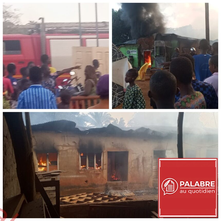 Un violent incendie s’est déclaré ce samedi au carrefour Dako, en face de la station SGB To, provoquant d’importants dégâts matériels. Le feu, attribué au kpayo, a rapidement consumé un bâtiment, des habits et plus de six barils d’essence, semant la panique parmi les habitants.