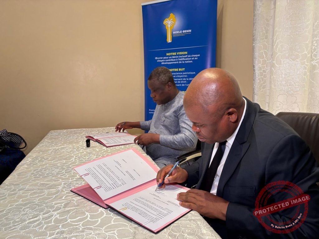 En début d’après-midi de ce vendredi 24 octobre 2025, Jacques AYADJI, président du parti Moele-Bénin, et Paul HOUNKPÈ, Secrétaire Exécutif National du parti FCBE, ont signé un accord de coalition parlementaire en vue des élections législatives de 2026.