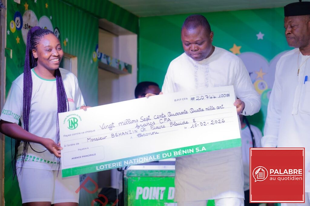 La chance a souri à Bohicon. Un parieur originaire de la ville est reparti, ce mercredi 18 février 2026, avec un chèque de 20.744.100 francs CFA, fruit de sa combinaison gagnante au Quinté+. La remise officielle a été organisée au carrefour Zakpô par la Loterie Nationale du Bénin (LNB S.A.), sous les applaudissements d’une foule venue nombreuse assister à l’événement.