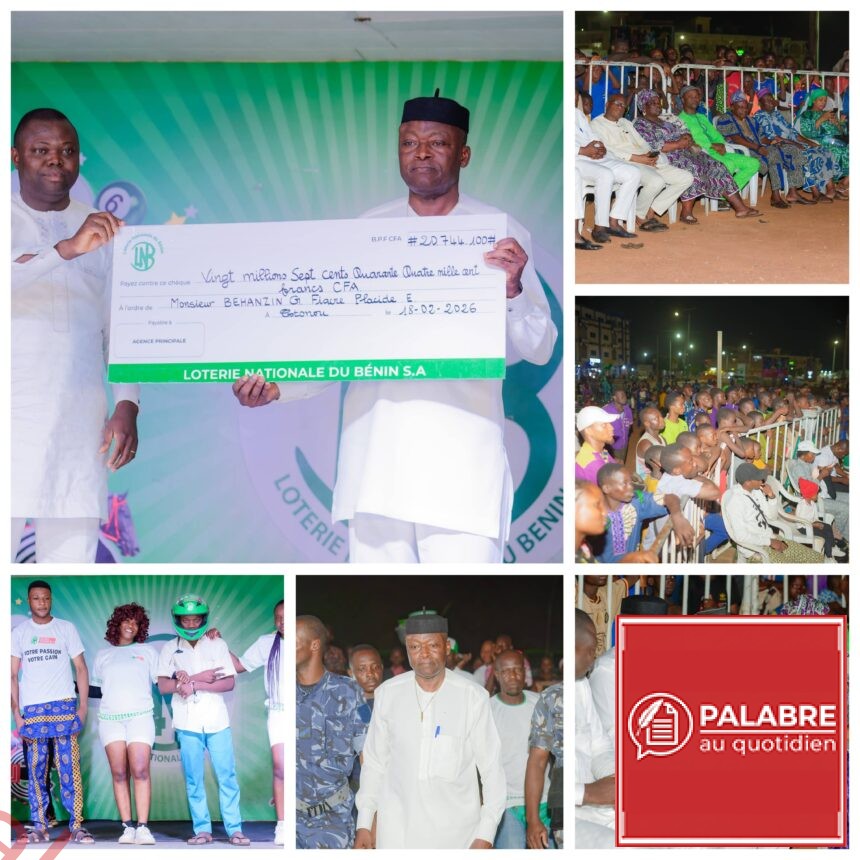 La chance a souri à Bohicon. Un parieur originaire de la ville est reparti, ce mercredi 18 février 2026, avec un chèque de 20.744.100 francs CFA, fruit de sa combinaison gagnante au Quinté+. La remise officielle a été organisée au carrefour Zakpô par la Loterie Nationale du Bénin (LNB S.A.), sous les applaudissements d’une foule venue nombreuse assister à l’événement.