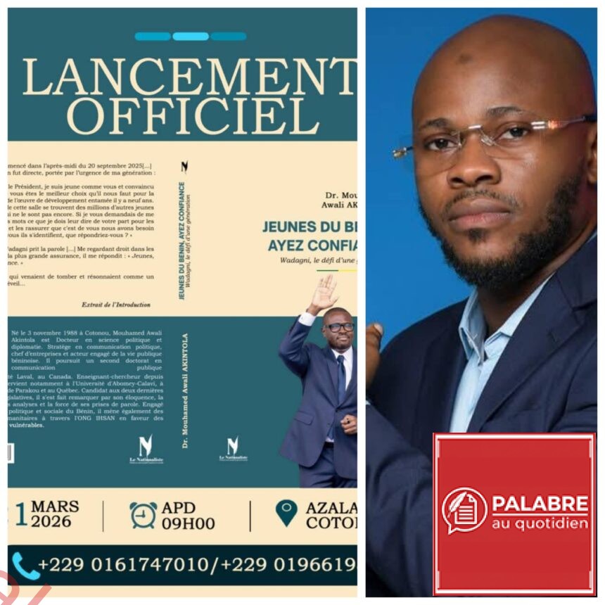 À l’approche de l’élection présidentielle du 12 avril 2026 au Bénin, le débat public s’enrichit de nouvelles contributions intellectuelles. Dr Mouhamed Awali Akintola annonce le lancement prochain de son ouvrage intitulé : « Jeunes du Bénin, ayez confiance : Wadagni, le défi d’une génération ».