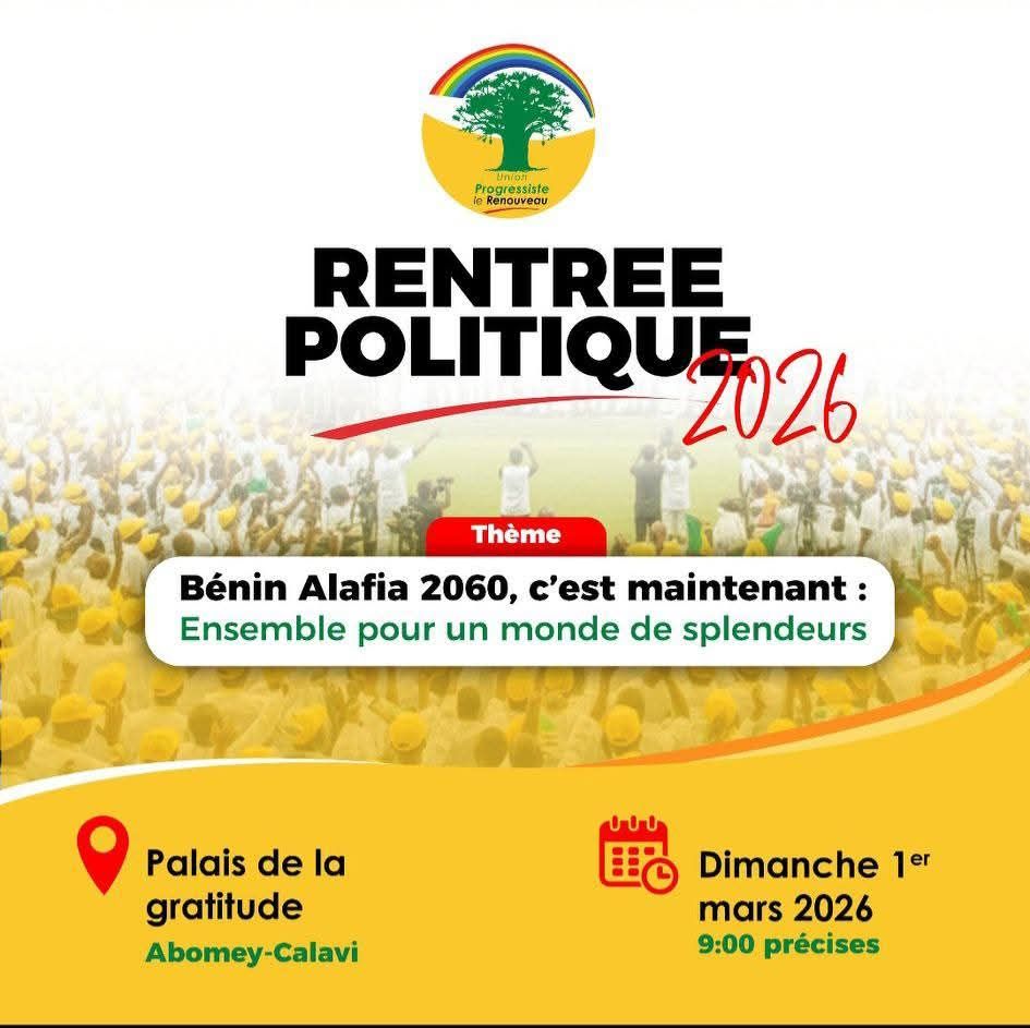 Le parti Union Progressiste le Renouveau a officiellement lancé sa rentrée politique ce dimanche au Palais de la Gratitude, dans la commune d’Abomey-Calavi. À quelques semaines de l’élection présidentielle d’avril 2026, la formation politique de la majorité présidentielle a voulu faire de cet événement un moment fort de rassemblement, de projection et de remobilisation.